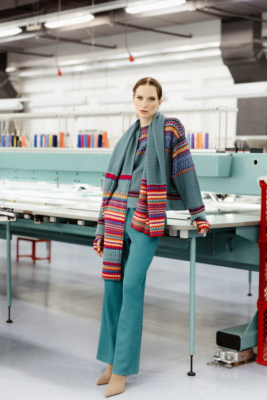 Ivko Intarsia Scarf, Abstract Pattern light brown wash