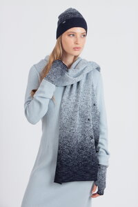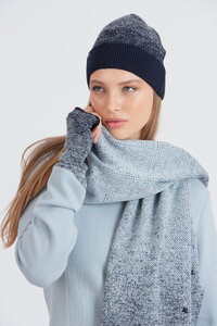 Wrist warmers in a wool blend with the Murmurations pattern. Elastic and textured, they provide comfort with a touch of detail.