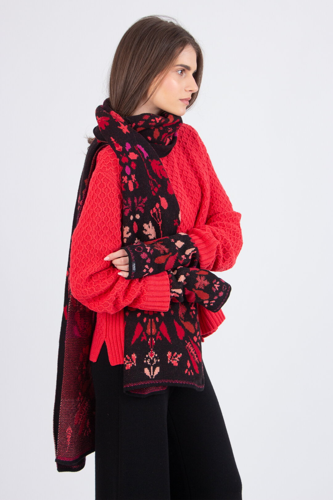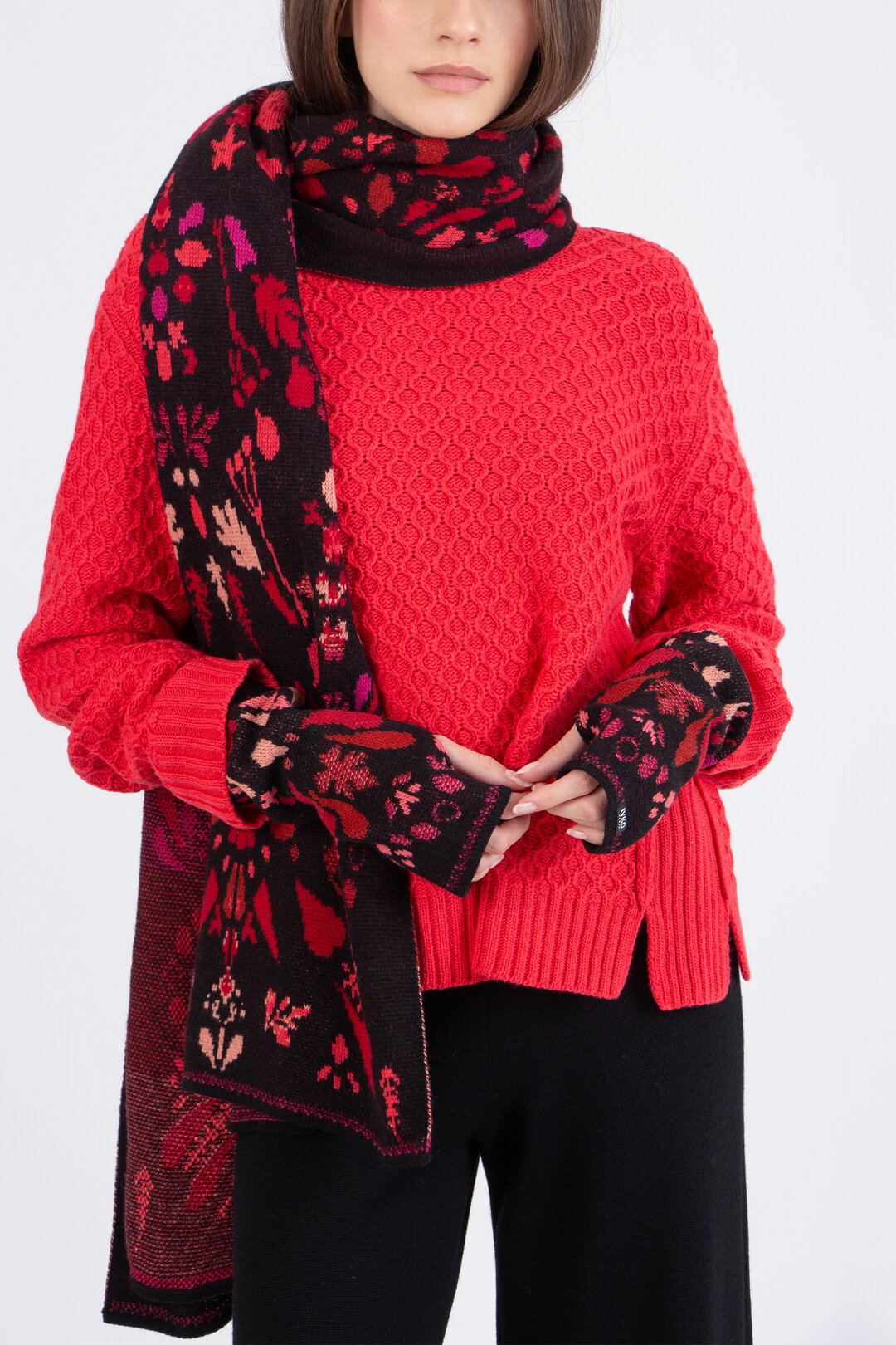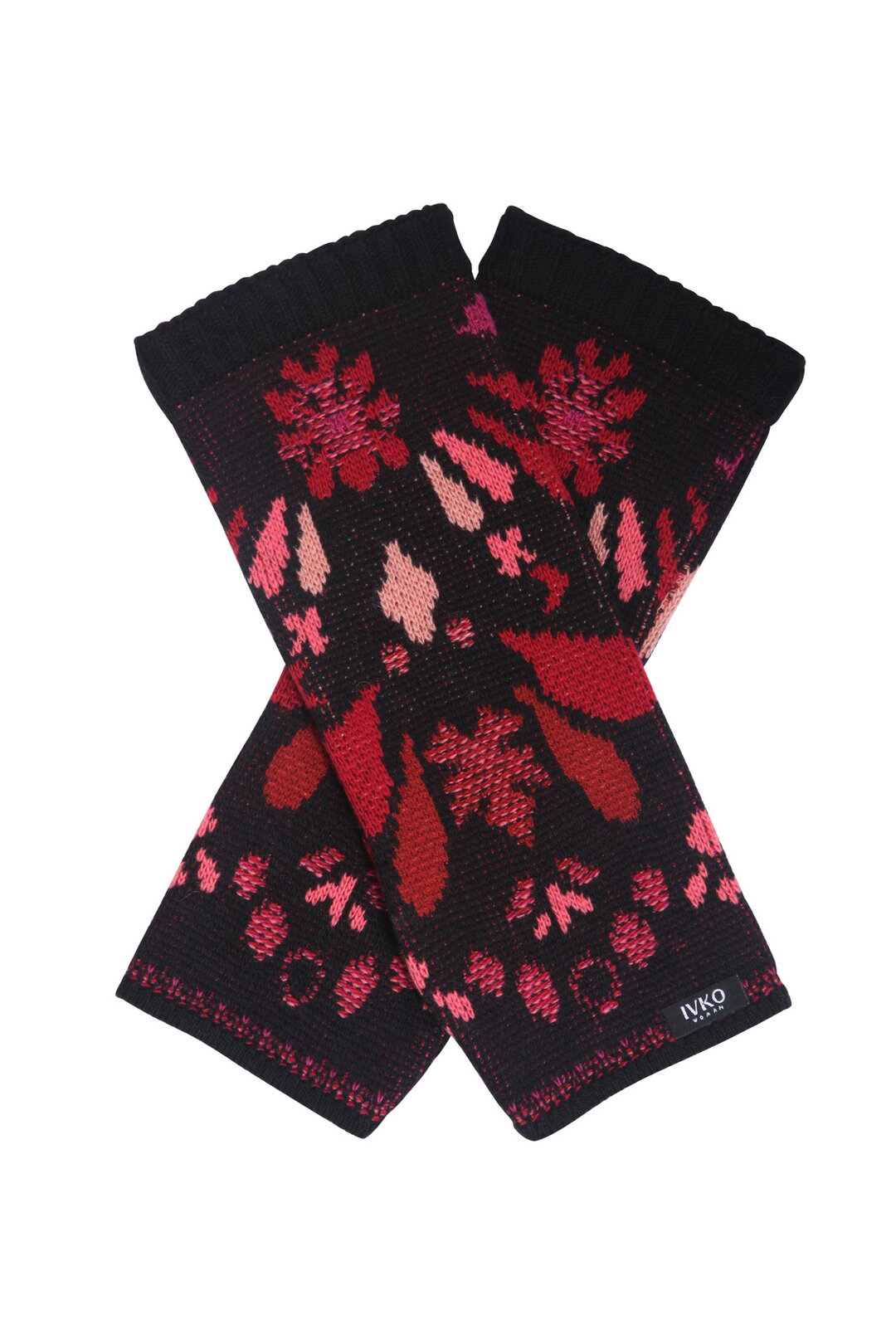 Wool, viscose, nylon, and cashmere wrist warmers with Plantopia jacquard motif. Compact design retains warmth while refined details add a decorative touch.