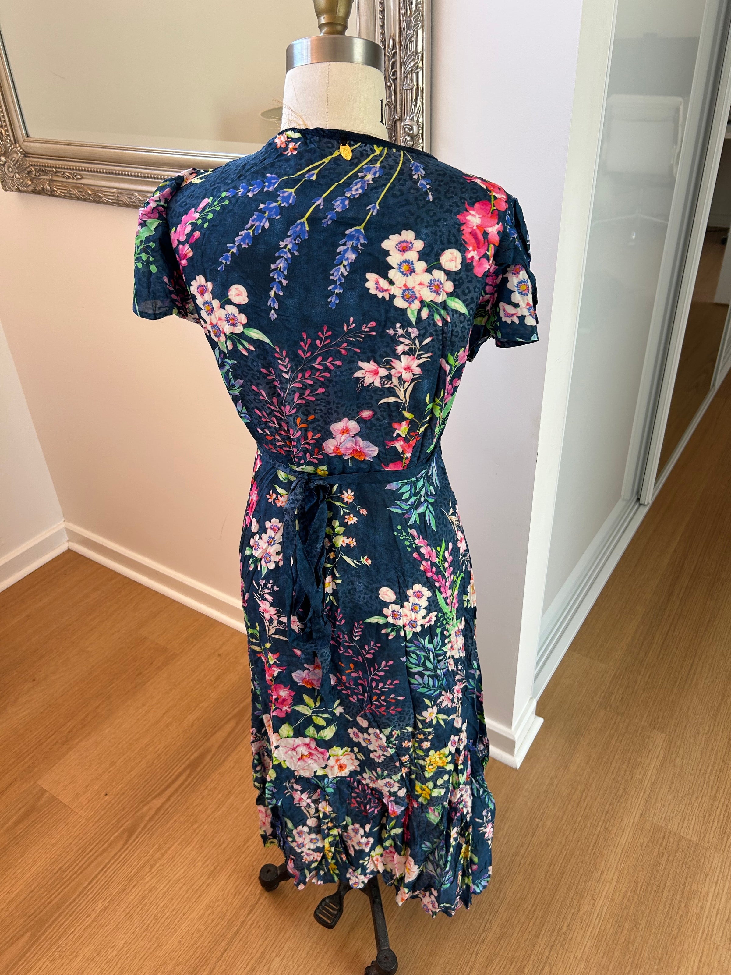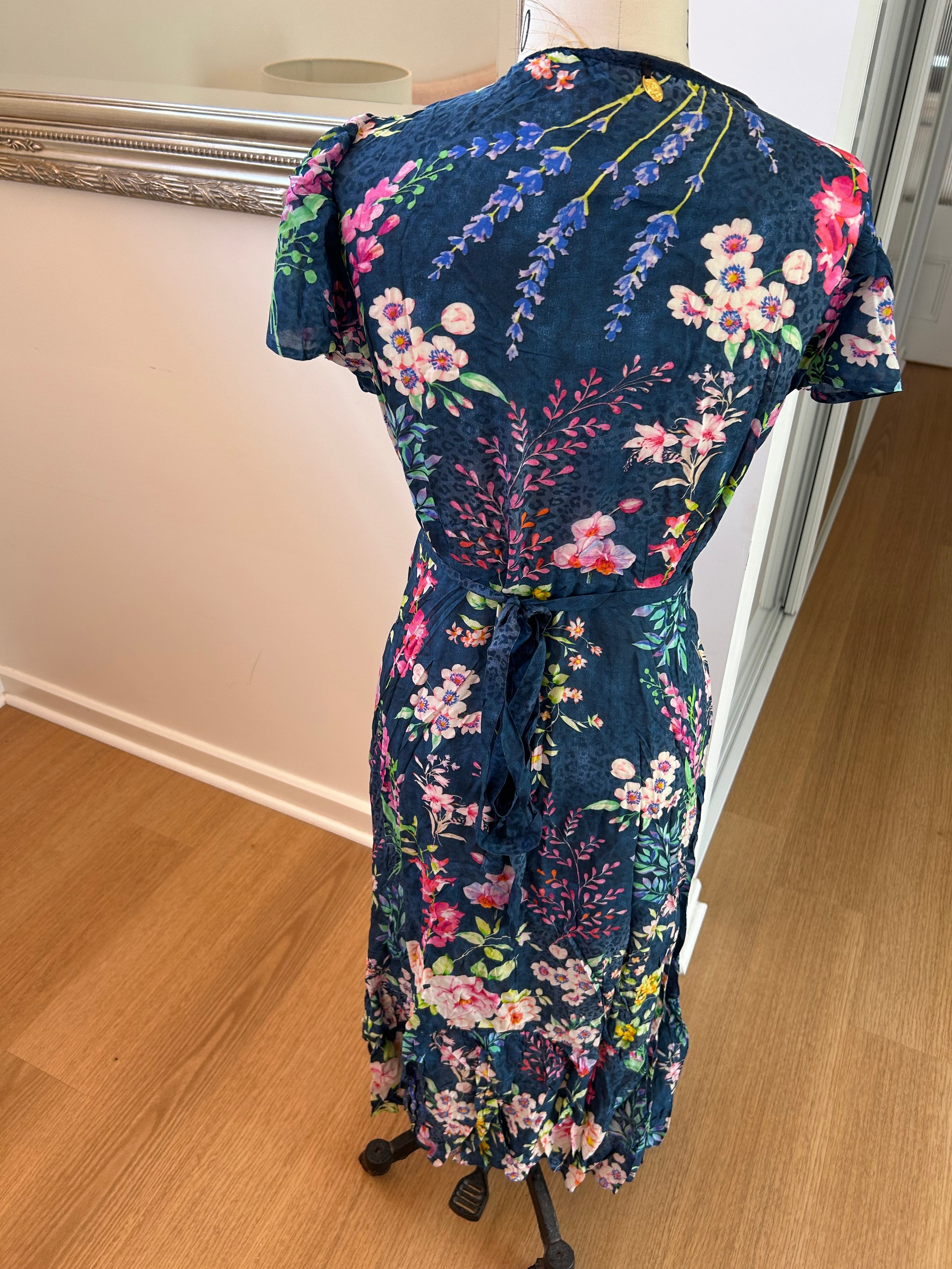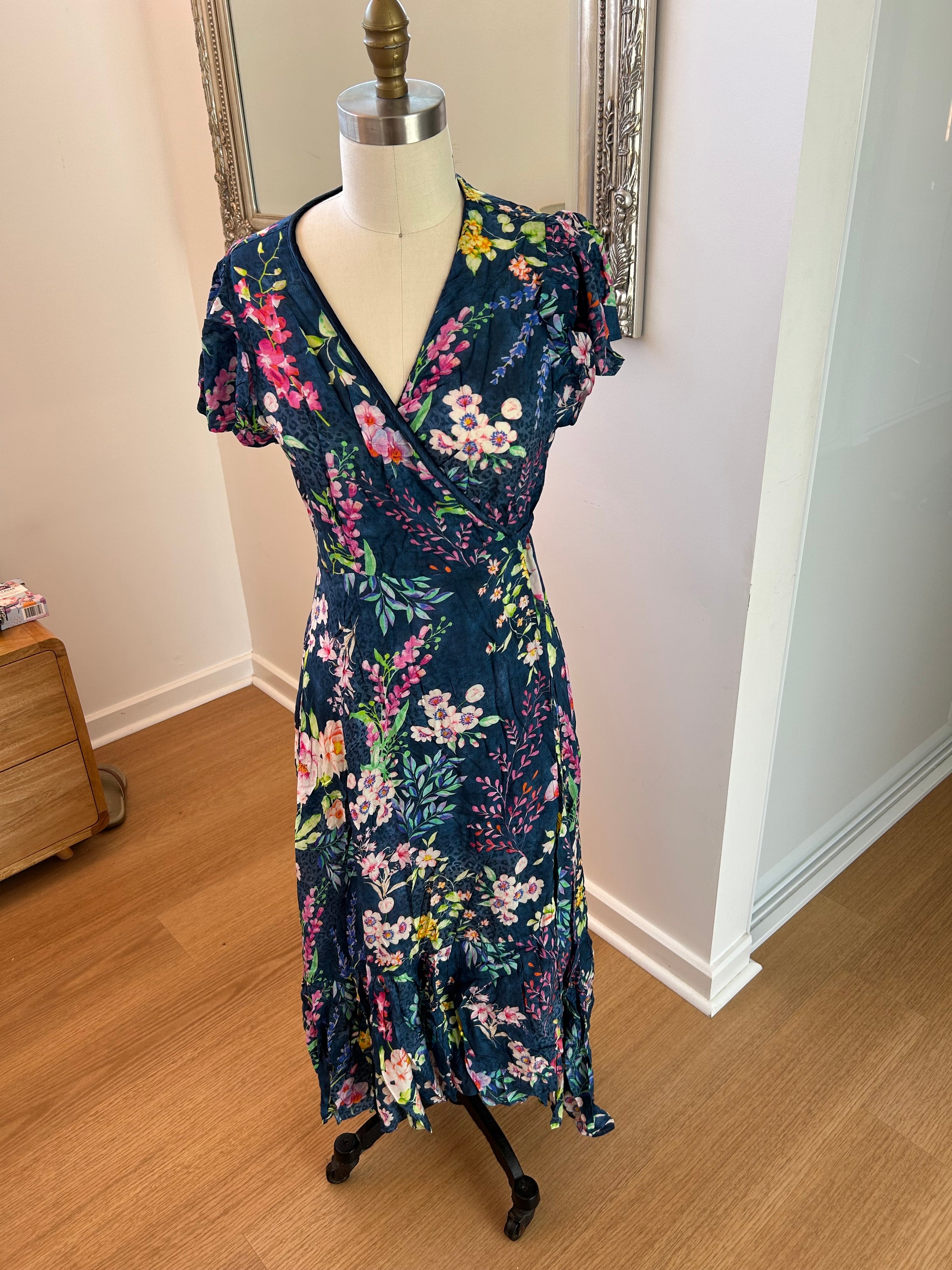Fun 100% Viscose Wrap dress with a slit for the wrap cord. This Viscose is designed to be crushed. Bold dark blues for those summer days with a long length.